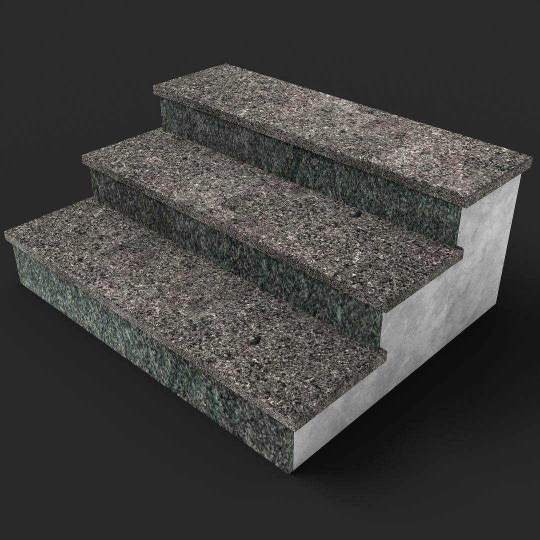 Гранітні сходи з Маславського родовища мають широку палітру кольорів від світло-зелених до насичених темних відтінків. Вони можуть бути оброблені з різною текстурою: від матової поверхні до полірованої, а також з антиковзним покриттям.